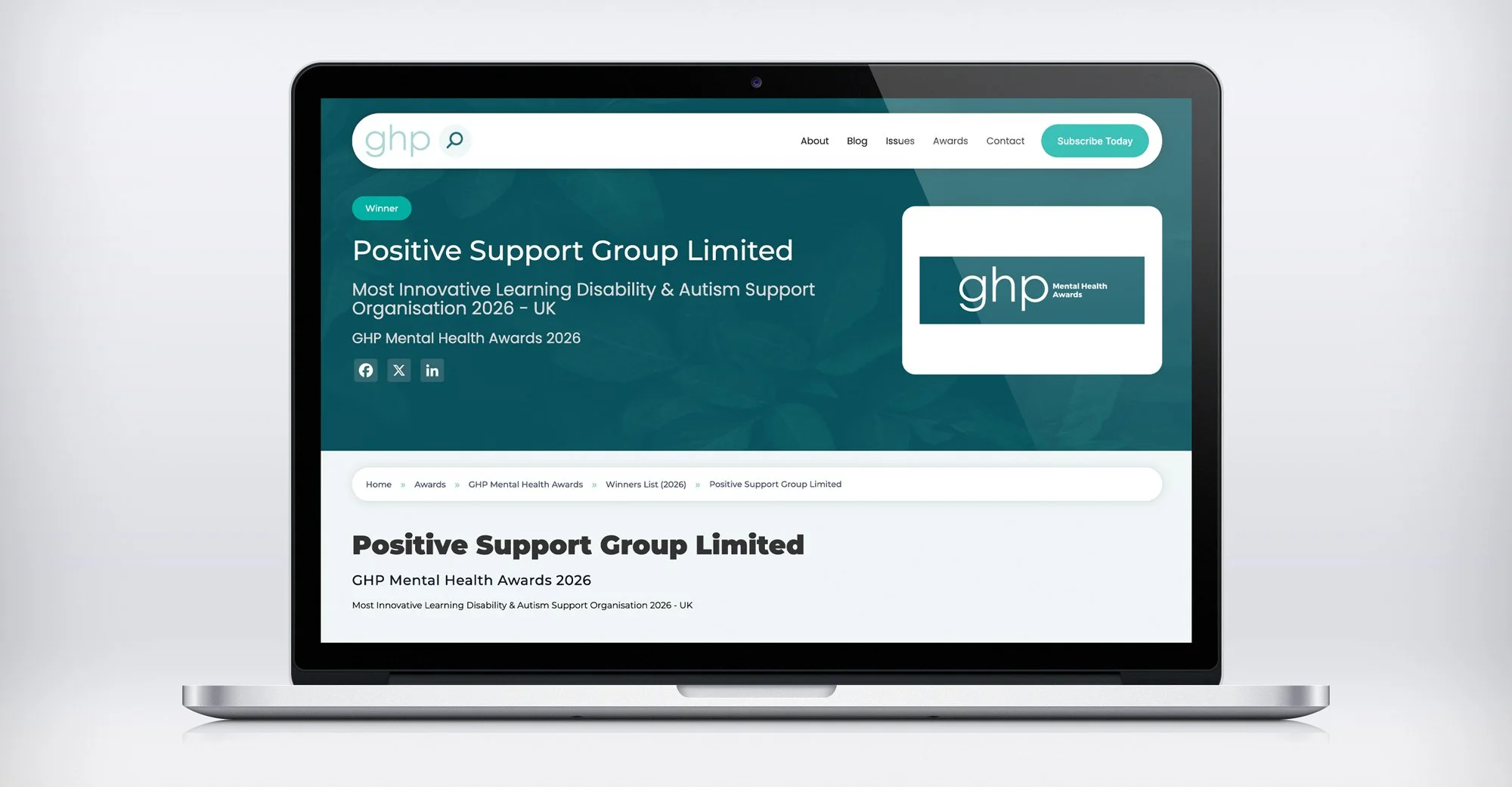 We are delighted to share that Positive Support Group has been recognised as a winner in the Global Health & Pharma (GHP) Mental Health Awards 2026, receiving the title Most Innovative Learning Disability & Autism Support Organisation 2026 – UK.